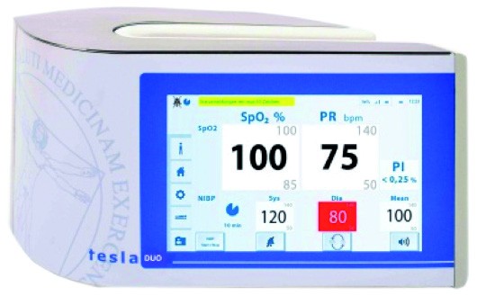 TeslaDUO kết hợp theo dõi độ bão hòa oxy máu động mạch và đo huyết áp không xâm lấn trong một thiết bị nhỏ gọn.